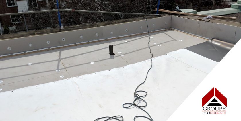 Rénovation d’un toit blanc. Un autre projet conçu par l’équipe de Groupe Ecoenergie.